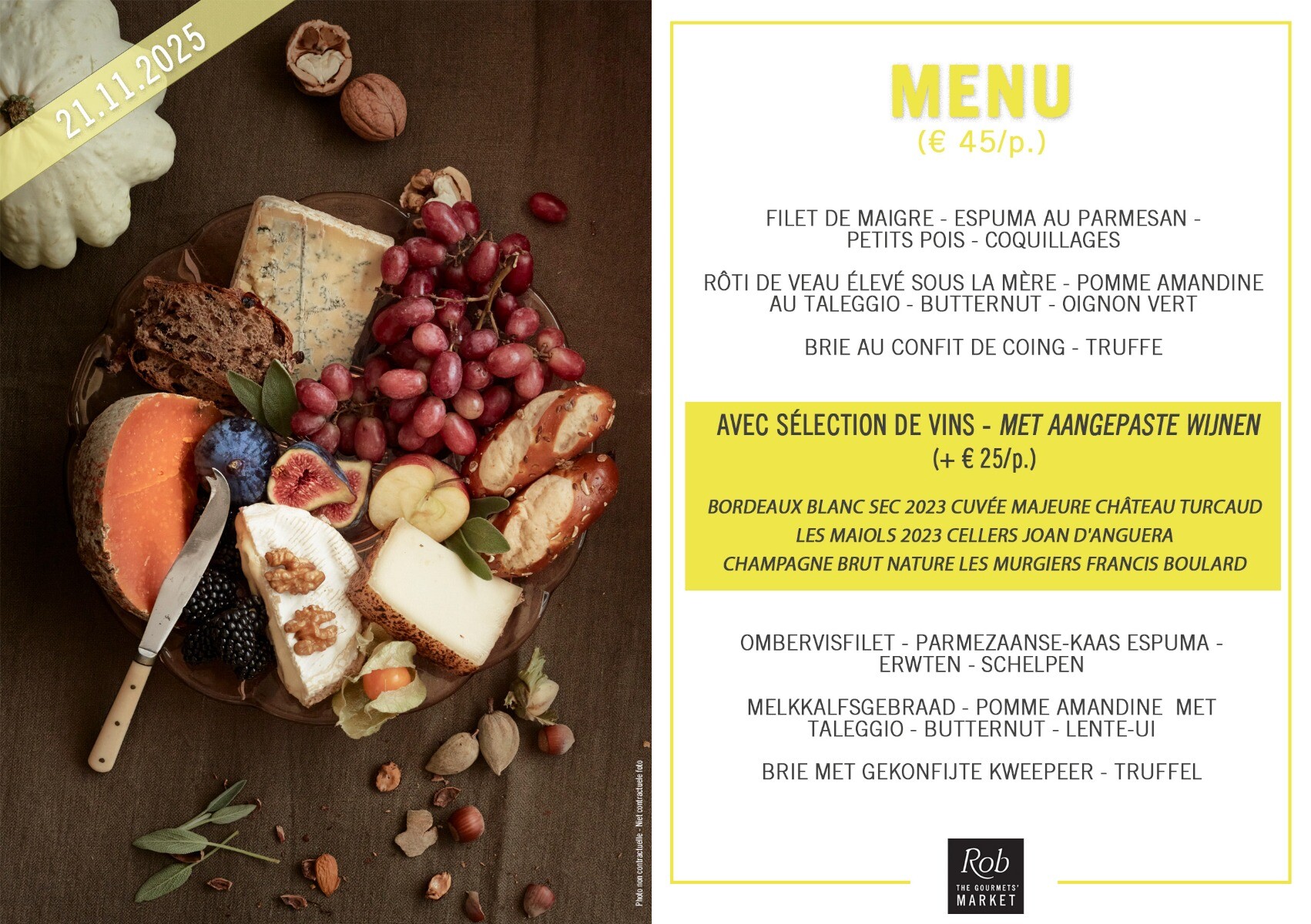 Op vrijdag 21 november opent chef Alain Bergen uitzonderlijk het restaurant met een exclusief ontdekkingsmenu rond "Kaas en wijn'.